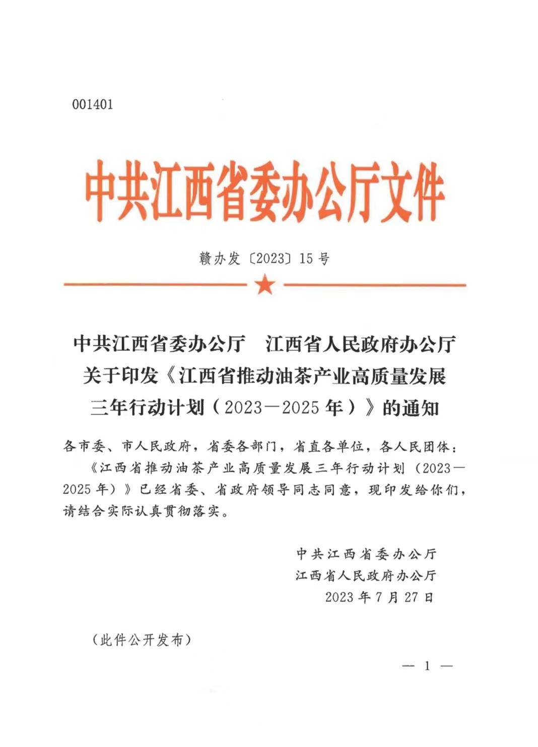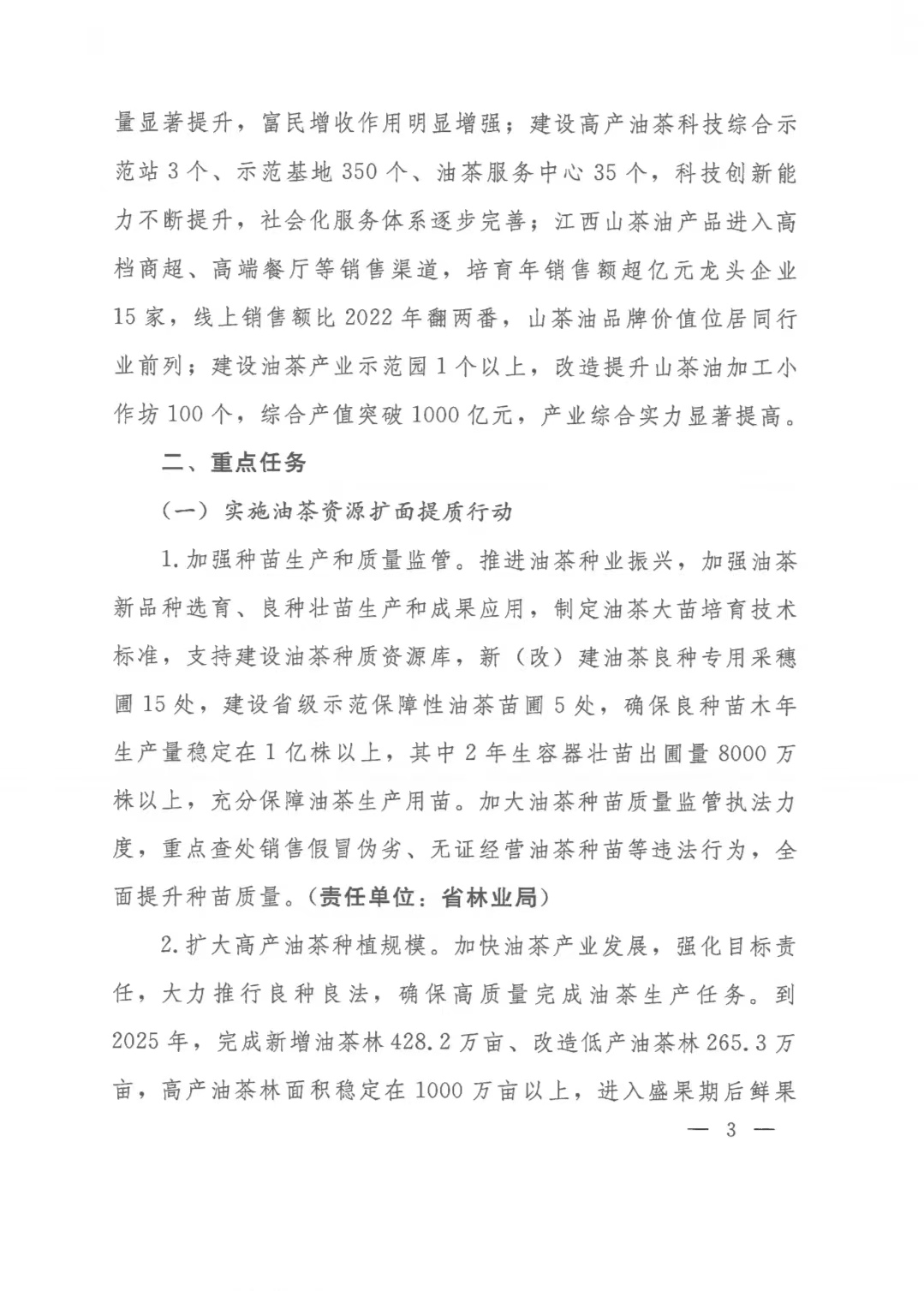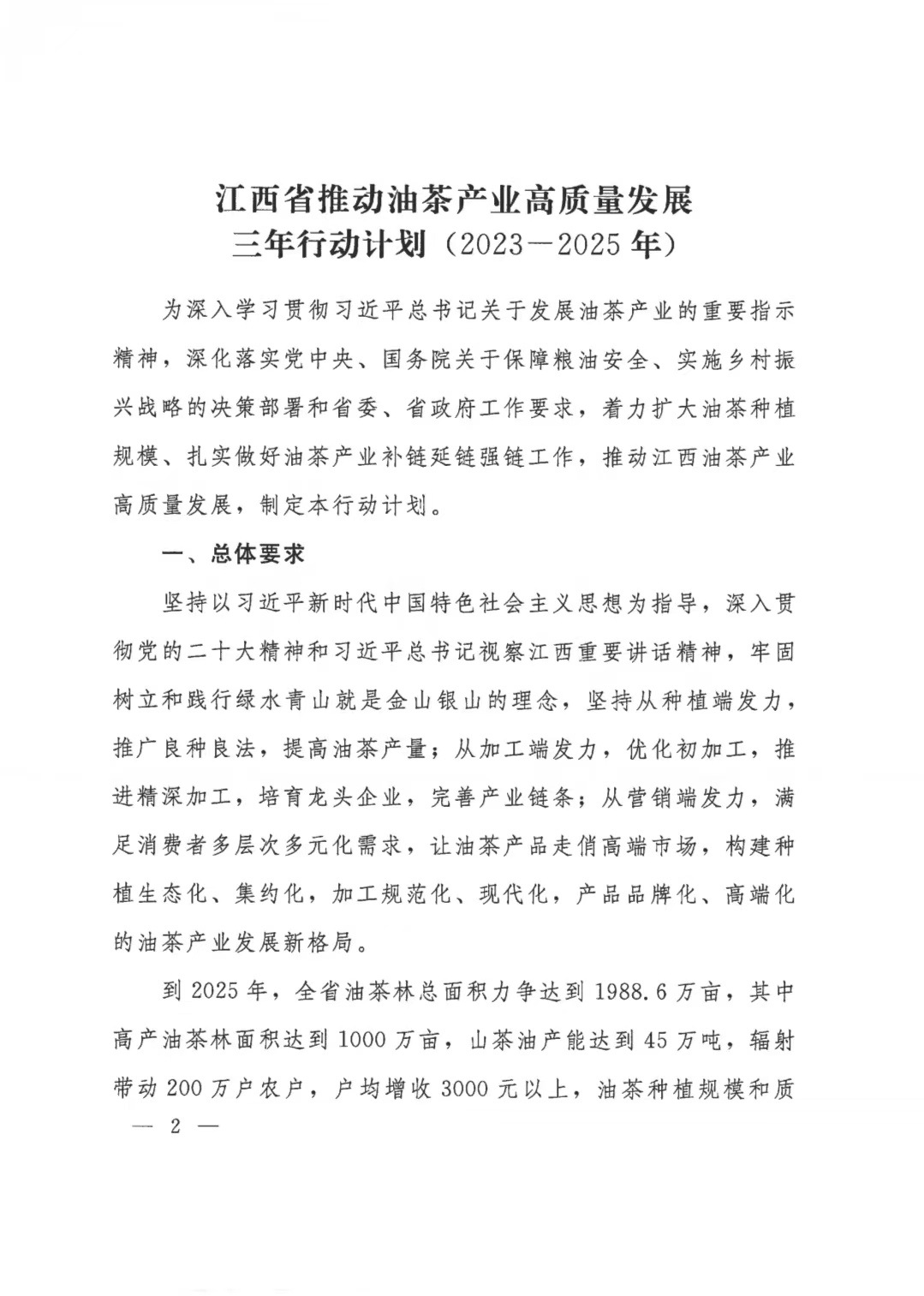 江西省人民政府办公厅关于印发《江西省推动油茶产业高质量发展三年行动计划(2023-2025年)》的通知