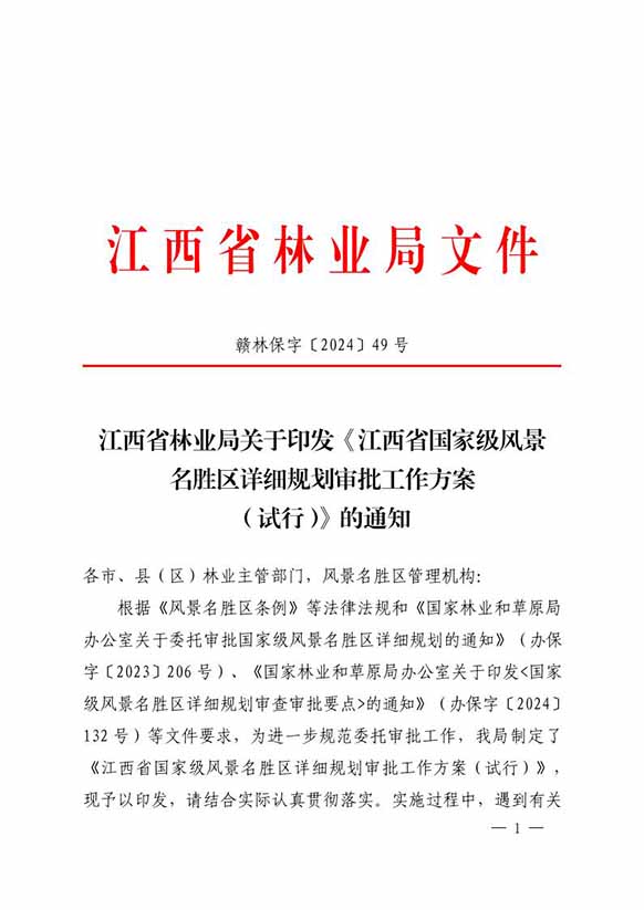 江西省林业局关于印发《江西省国家级风景名胜区详细规划审批工作方案(试行)》的通知