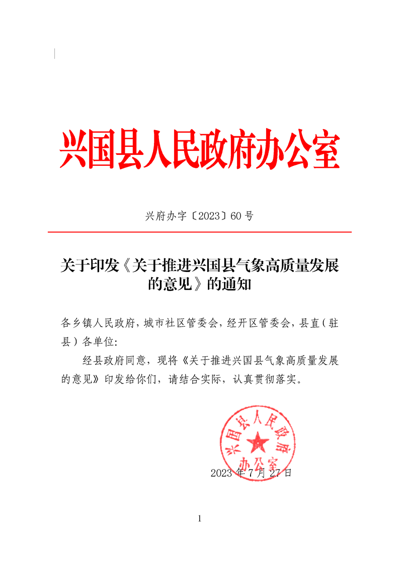 【有效】关于印发《关于推进兴国县气象高质量发展的意见》的通知